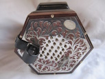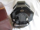 | Mayenburg - Ref: A20M2 20 key C/G mahogany ends. Original 5 fold bellows, have long extension, as good as most 6 fold bellows. Very clean even has the original handstraps! The reeds have been reworked to improve the sound and response, similar to a Lachenal (good bright response) but a bit louder. £750 |